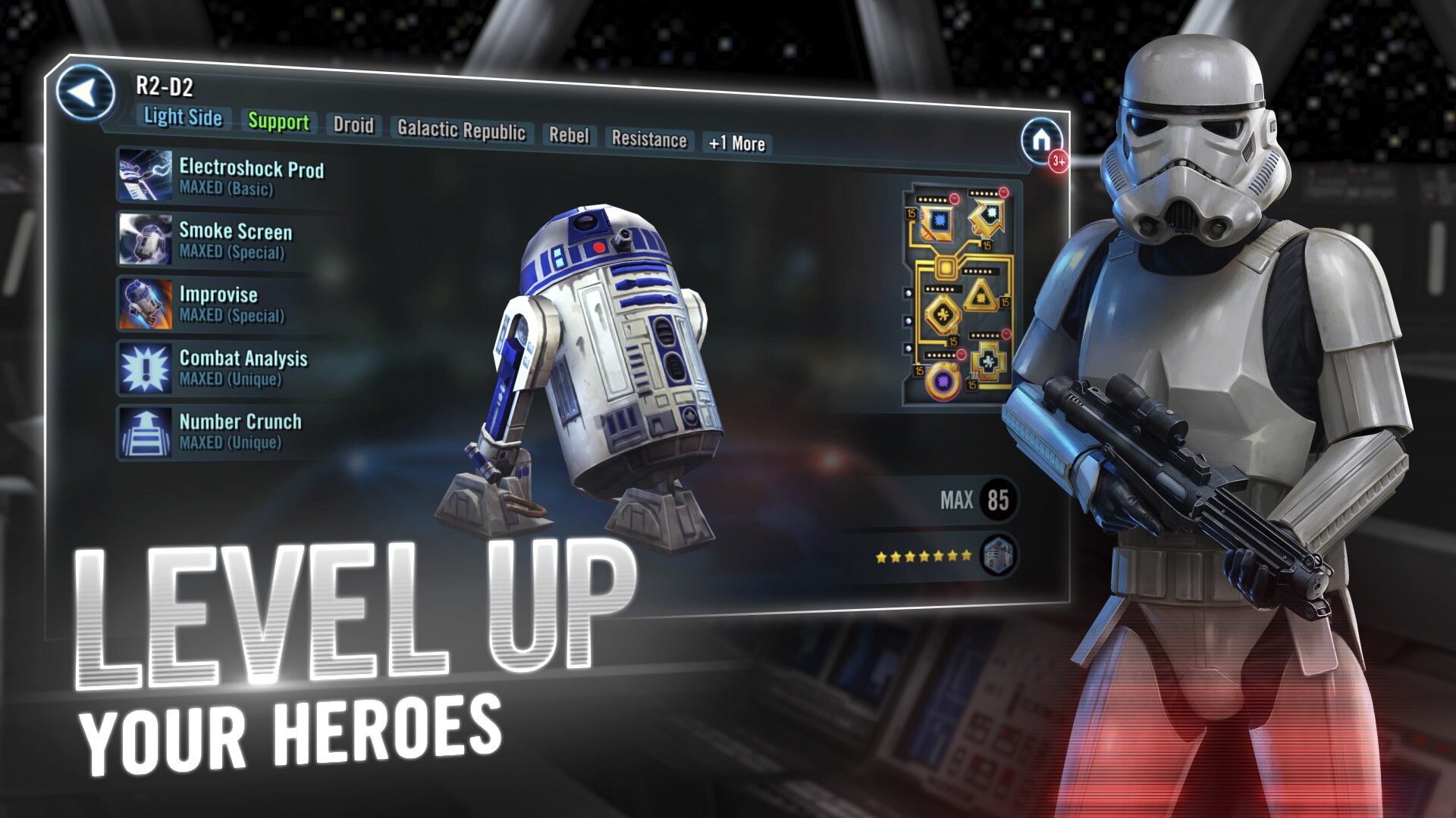 Skip Navigation More More Search Cancel My Account Logout other instagram twitter facebook youtube other Skip Navigation NEWS + FEATURES THE LATEST THE MANDALORIAN AND GROGU QUIZZES + POLLS BOOKS + COMICS VIDEO FILMS SERIES All Series Star Wars: Visions Andor Ahsoka The Mandalorian GAMES + INTERACTIVE View All Games + Apps VR + Interactive DATABANK ALL DATABANK GALAXY MAP ERAS DISNEY+ STREAM NOW EXPLORE DISNEY+ THE DISNEY BUNDLE More More Cancel My Account Logout other instagram twitter facebook youtube other STAR WARS ON DISNEY+ © 2015 Disney Star Wars: Galaxy of Heroes Screenshots Images Share